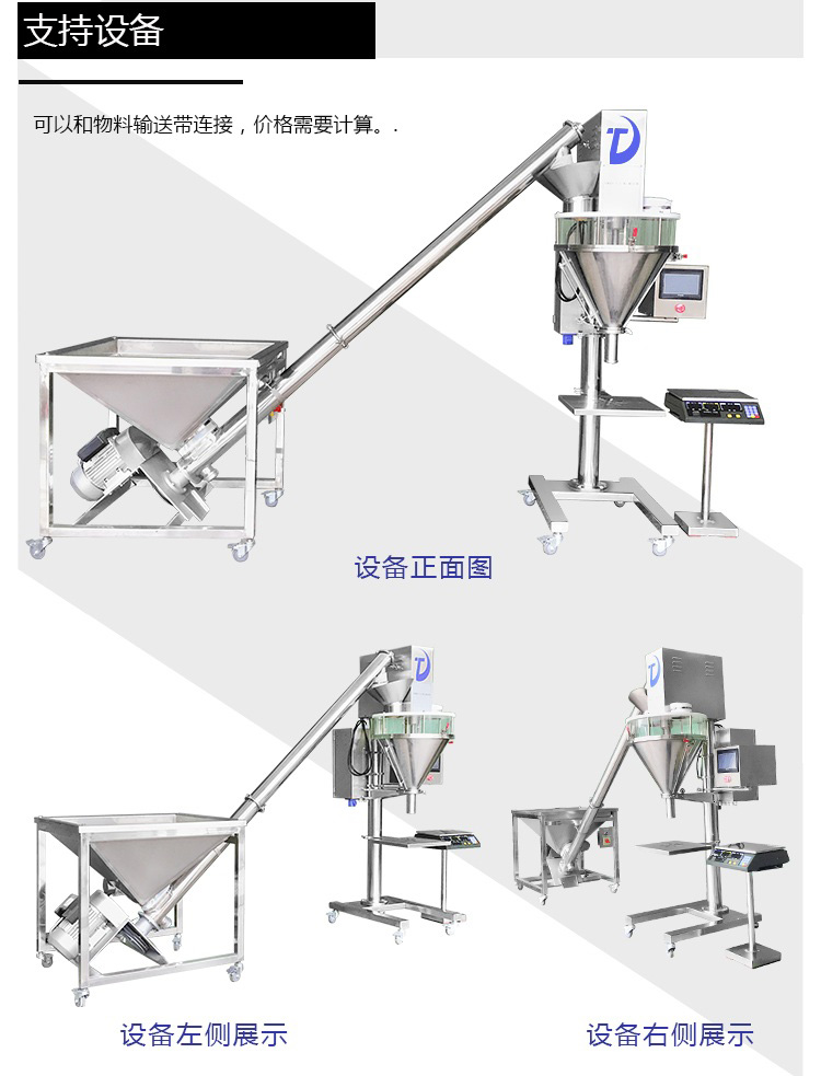 該粉劑包裝機適用于有一定流動性的粉劑狀、顆粒狀物料,可適合袋類、罐類、瓶類等各種包裝容器粉劑定量包裝,速度快、精度高。如農藥、獸藥、預混料、添加劑、奶粉、淀粉、調味品、酶制劑、飼料等粉劑狀、雞精、餃子粉、葡萄糖、奶粉、綠豆粉、淀粉、調味料、飼料、顆粒狀物料的定量包裝。粉劑包裝機可以使用各種可熱封合的復合膜包裝材料,其包裝材料可印刷成連續商標圖案,也可以印刷成帶有色標的單袋完整商標圖案。