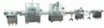 液體灌裝生產線是由理瓶、灌裝、旋蓋、鋁箔封口、不干膠等單機組成的瓶裝生產線。